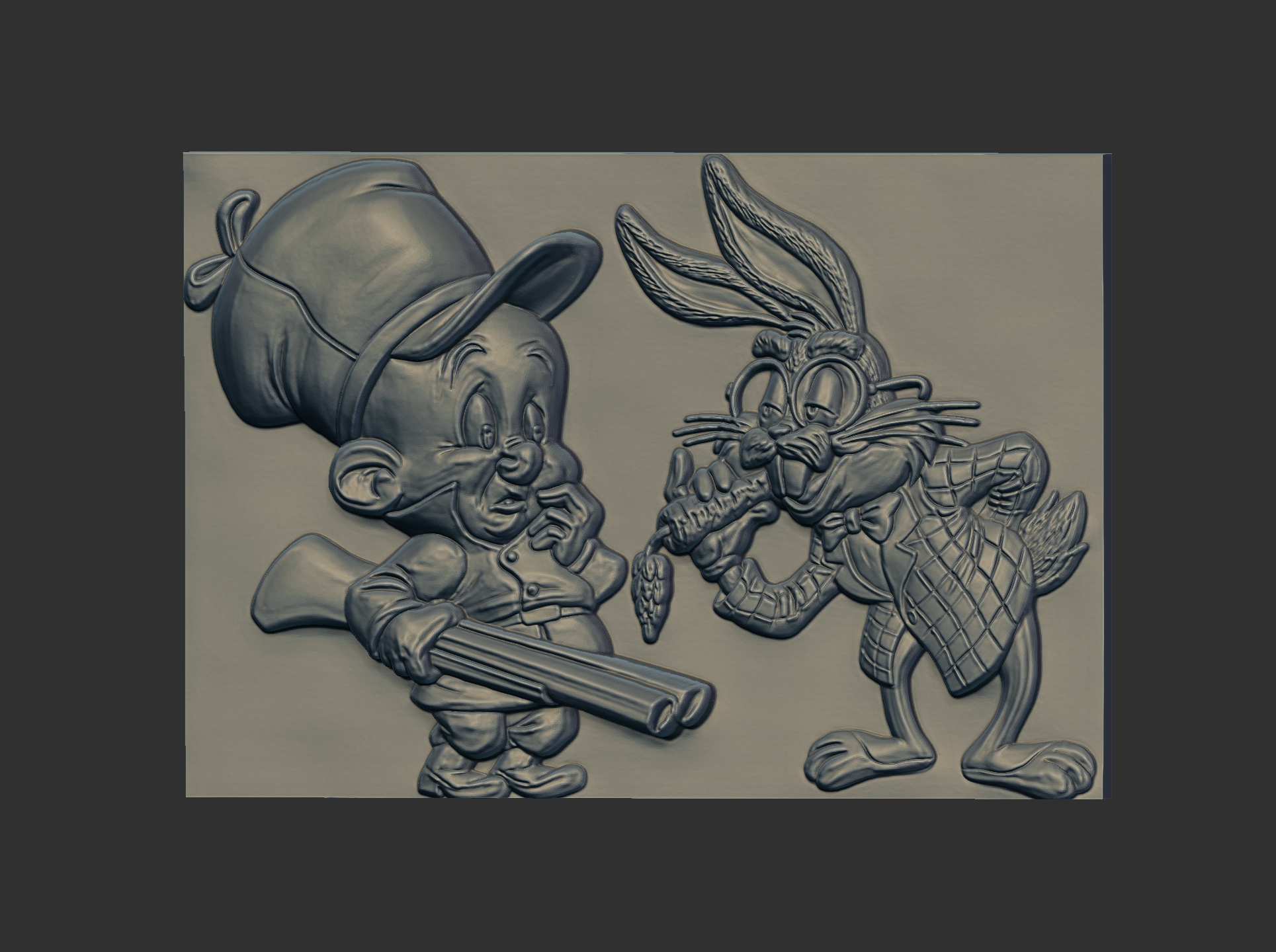 Bugs Bunny and Elmer Fudd 3D Relief Model
