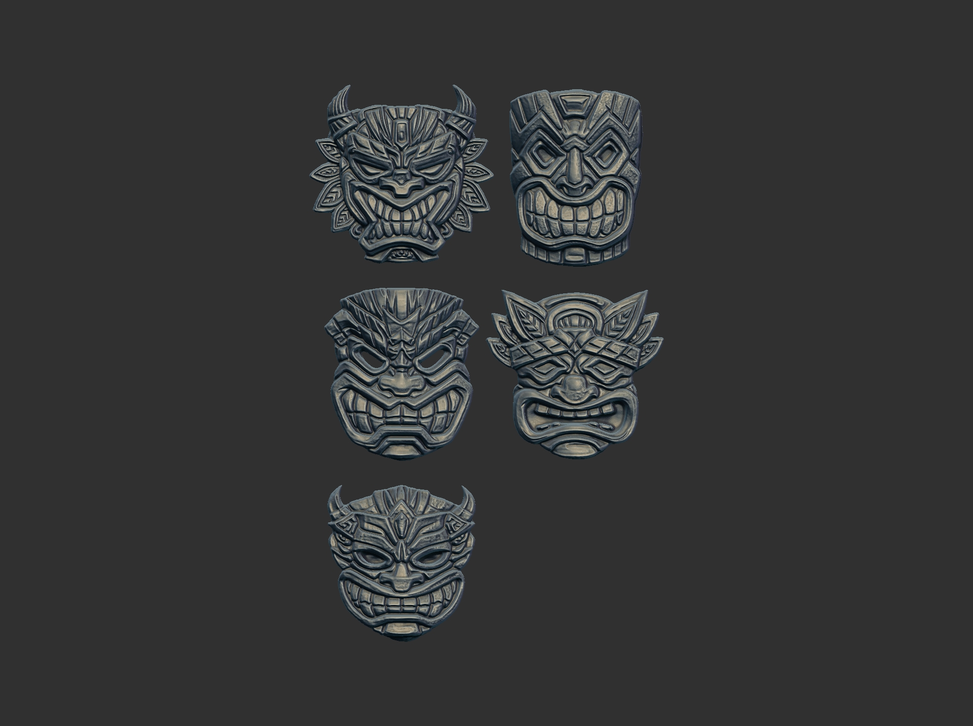 Tiki Tribal Masks 3D Bas-Relief Models Collection